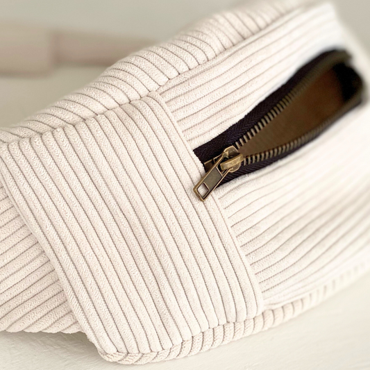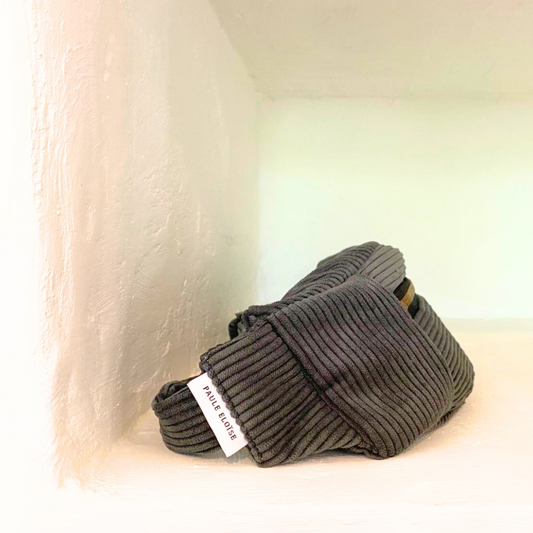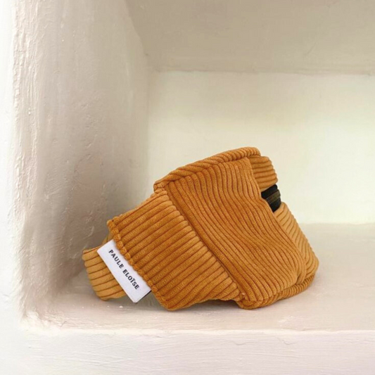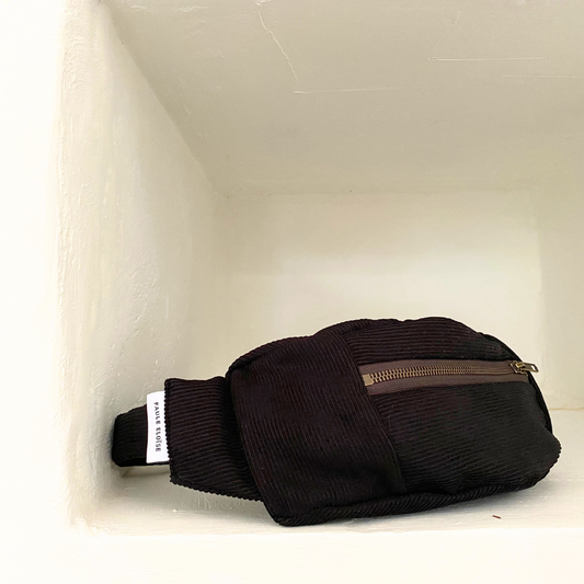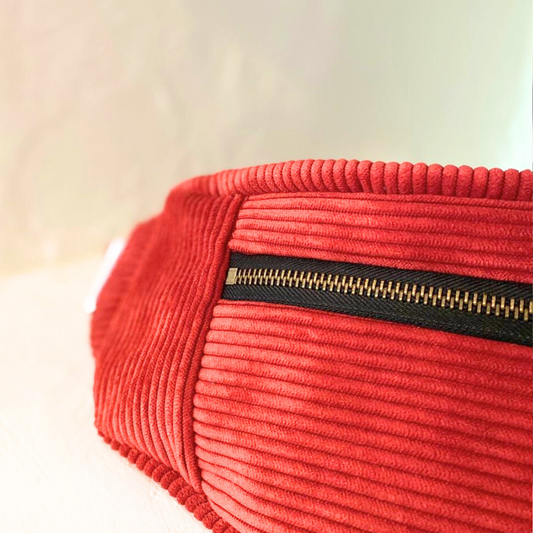 Les bananes classiques en velours côtelé sont notre première collection d'accessoires. Chaque pièce est confectionnée avec soin dans notre atelier. Elles sont parfaites pour ajouter une touche unique à votre tenue tout en gardant vos affaires à portée de main.
