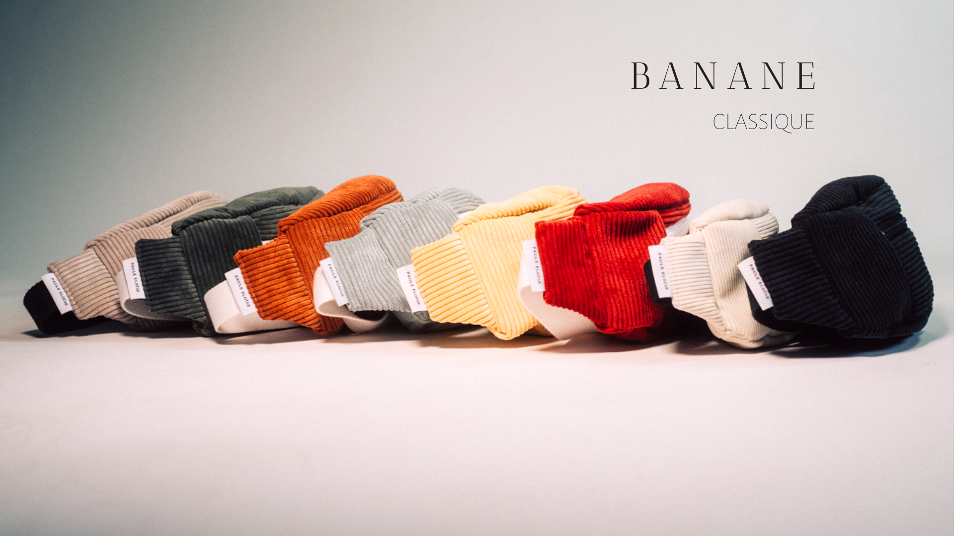 Les bananes classiques en velours côtelé sont notre première collection d'accessoires. Chaque pièce est confectionnée avec soin dans notre atelier. Elles sont parfaites pour ajouter une touche unique à votre tenue tout en gardant vos affaires à portée de main.